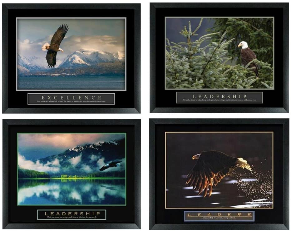 Who doesn’t love beautiful outdoor scenes that have scenic backgrounds featuring bald eagles near cliffs and forests? These 4 posters feature different scenes from nature. Underneath each photo, an inspirational word is accompanied by a quote or phrase that is sure to help people in the right direction. For example, one of the posters features a stunning lake by a snow-capped mountain with the text “LEADERSHIP” and “Never be afraid to take charge and spread your wings, for the distance soared will amaze you.” With 3 more equally encouraging posters, you’re sure to set the right mood in your space. At WallsThatSpeak, we provide high-quality paper and canvas prints that are printed using a lithographic or digital process. Our 22” x 28” posters come framed and ready to hang so that you can add your own personal touch as soon as the poster arrives. Rest assured that they have been precision-cut, so they will hang straight and fit well in any room. You’ll love the simplicity of these high-quality prints that complement a wide array of different design schemes and allow you to mix and match with other pieces of art. These posters make a great gift for the inspiration seekers in your life. They also allow you to bring a little extra pizzazz into your home, office, or classroom if you’re feeling like you need to spruce up the decorations. When you look at our stylish prints, you’ll be able to appreciate the beauty of nature from within your home. This versatile and classy print works in any room of the home or office, making them work for any recipient. Our images are proudly made and printed here in the United States, so you can be sure that you’re getting the quality you expect for your home. WallsThatSpeak is based in the USA, and we do our part to care for Mother Earth. We make sure to only print our artwork once an order is placed. This helps to save paper and ink so that no materials are wasted through pre-printing. Make your walls speak with these uplifting prints!